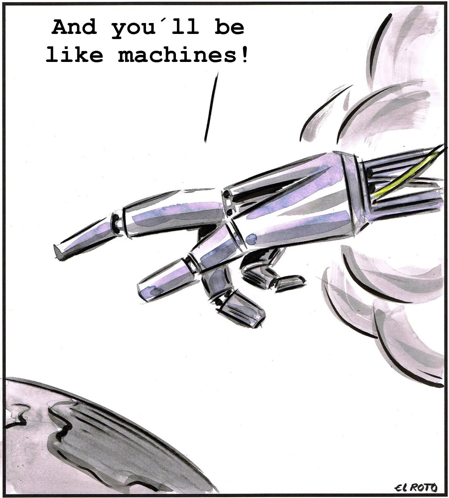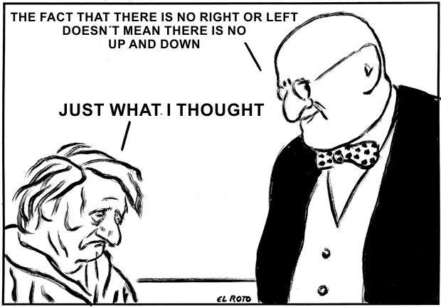 Along these articles I include many cartoons from diverse sources, (i.e. El Roto, etc.) because as Nietzsche already pointed out: “I know best why man alone laughs: he alone suffers so deeply that he had to invent laughter. The unhappiest and most melancholy animal is, as fitting, the most cheerful” (Will To Power, 91)